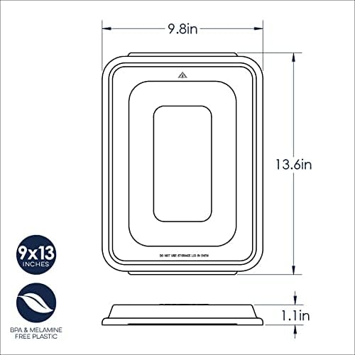 - Pan with lid measures 13.6 x 9.8 x 2 inches and the pan along measures 12.9 x 9.6 x 1.1 inches with a cooking surface of 12.2 x 8.8 inches.