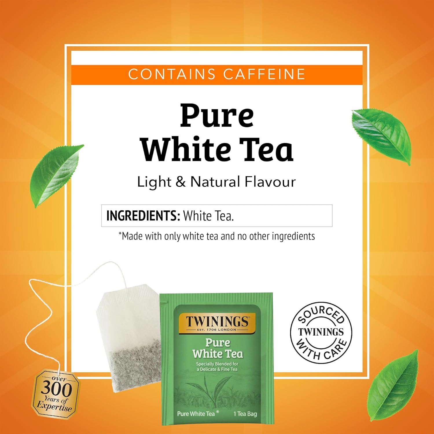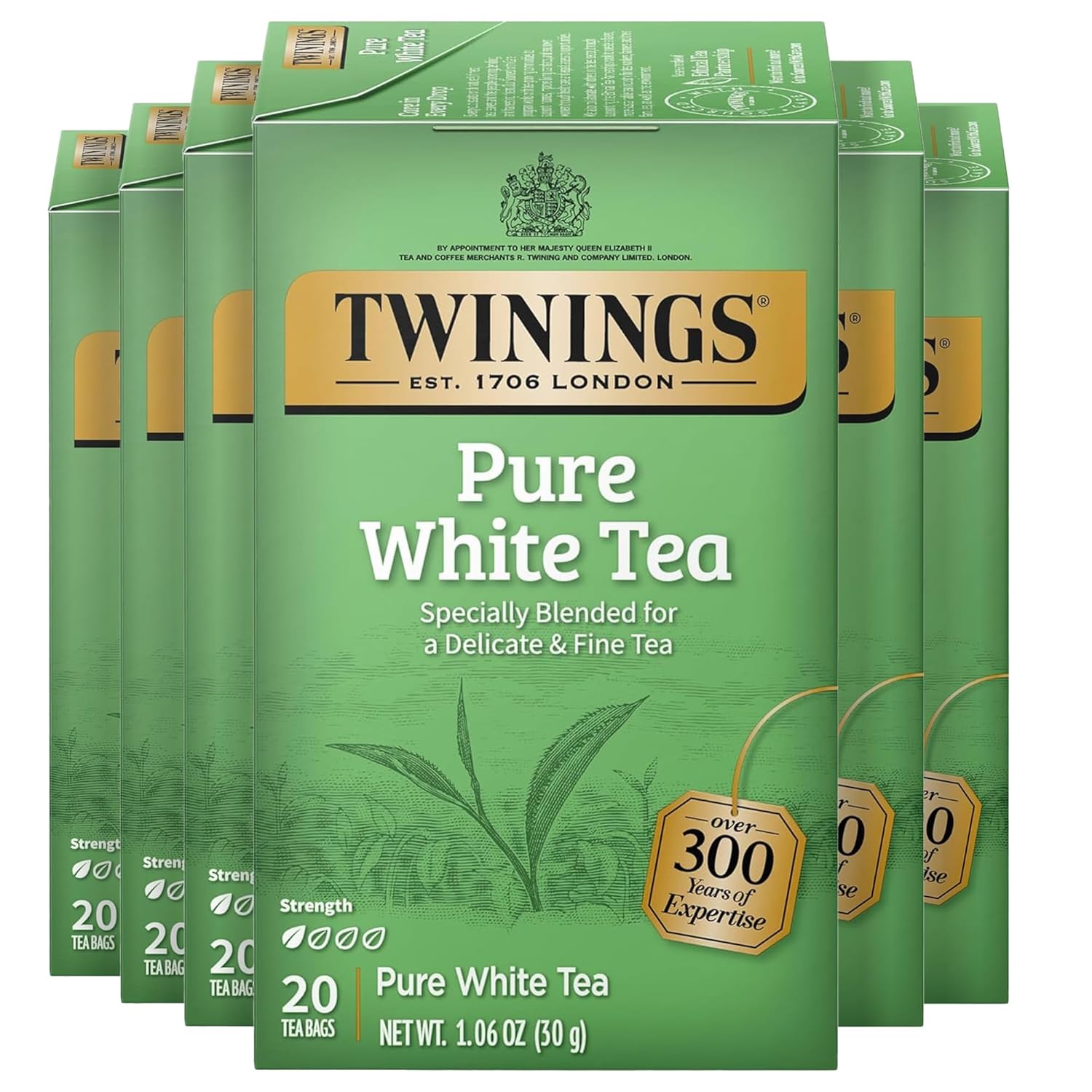 Twinings Pure White Tea Individually Wrapped Bags, 20 Count (Pack of 6), Light & Fresh, Caffeinated, Enjoy Hot or Iced, 120 Teabags