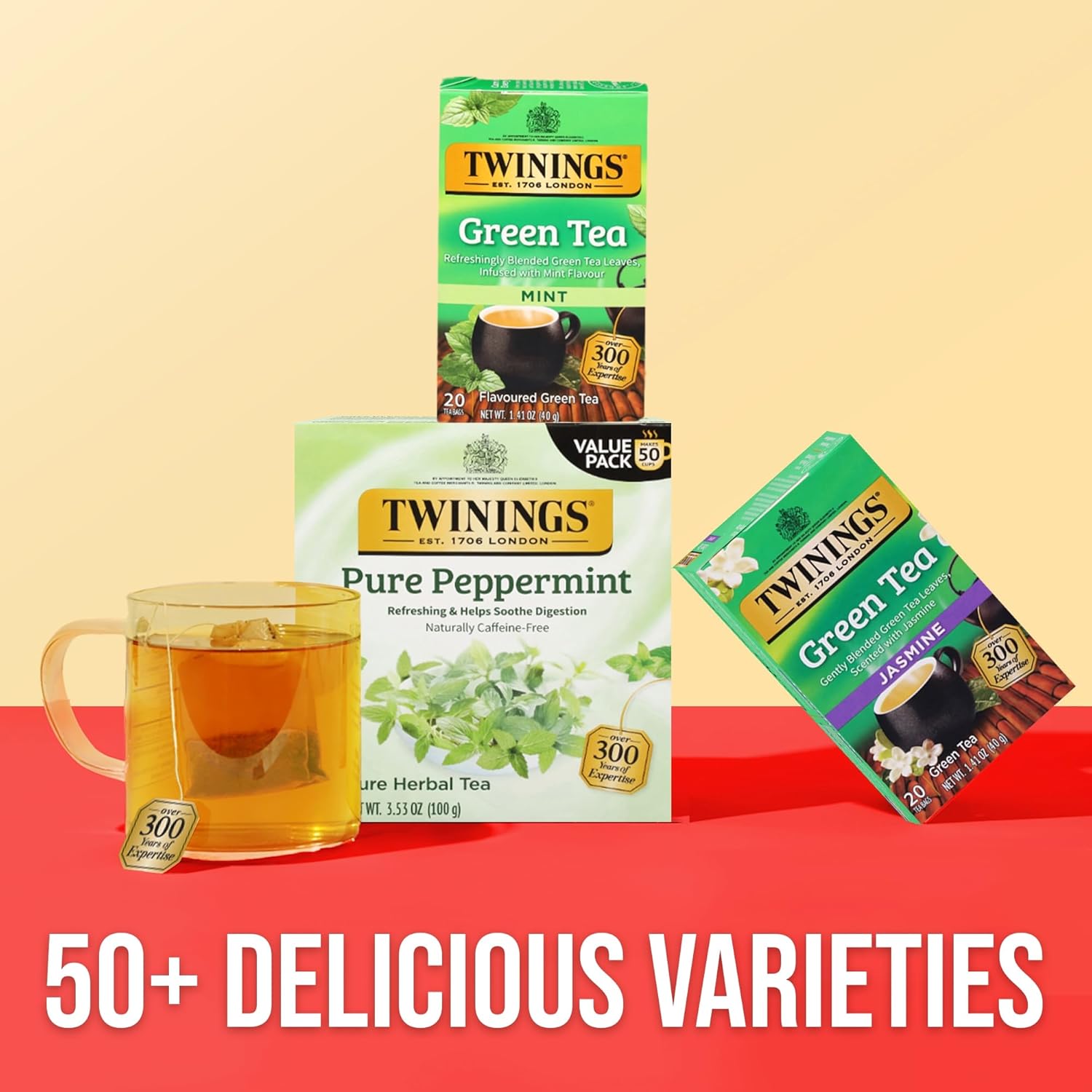 Twinings Green Tea with Mint Individually Wrapped Bags, 20 Count (Pack of 1), Invigorating Aroma, Caffeinated, Enjoy Hot or Iced, 20 Teabags
