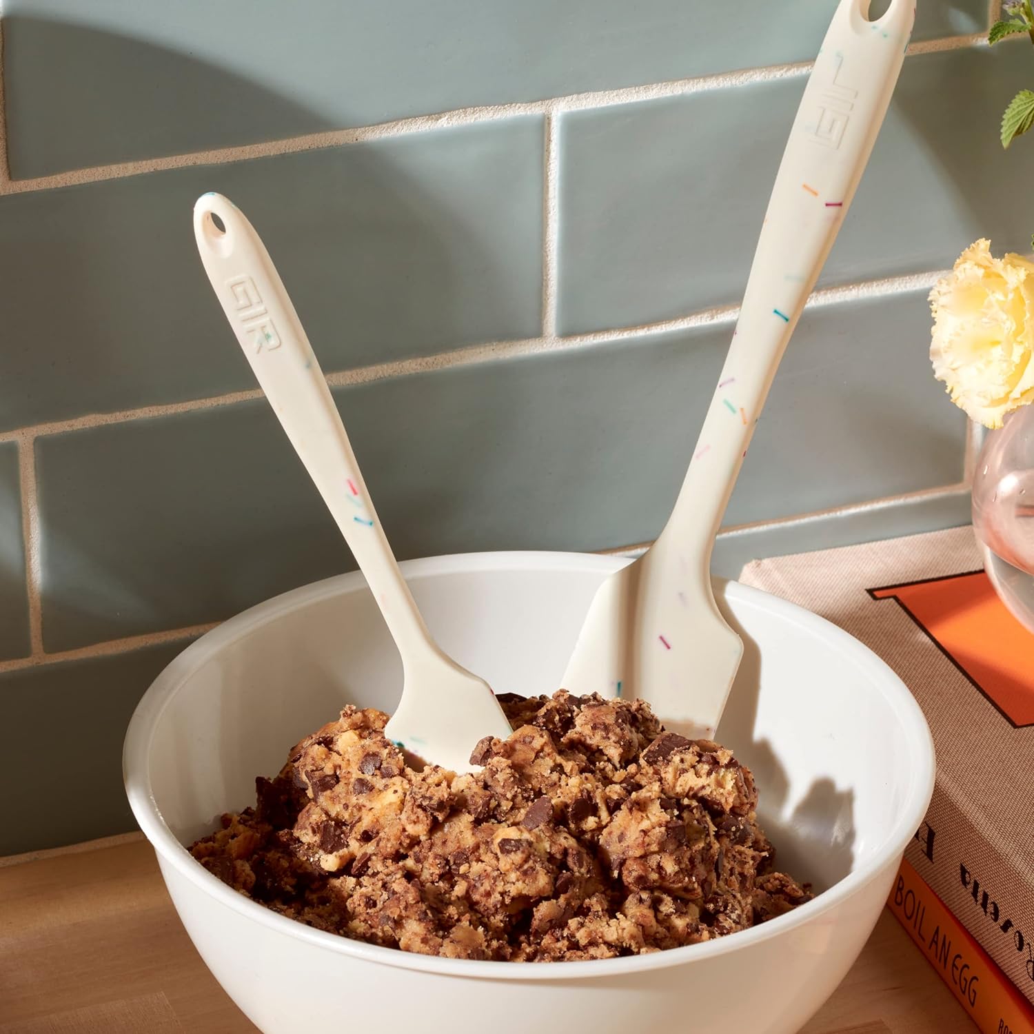 - Silicone Spatula Versatility: This silicone spatula is robust enough for tough cookie dough yet flexible for scraping. Ideal for nonstick pans, jars, and mixing bowls, making it an essential tool for your silicone cooking utensils collection
