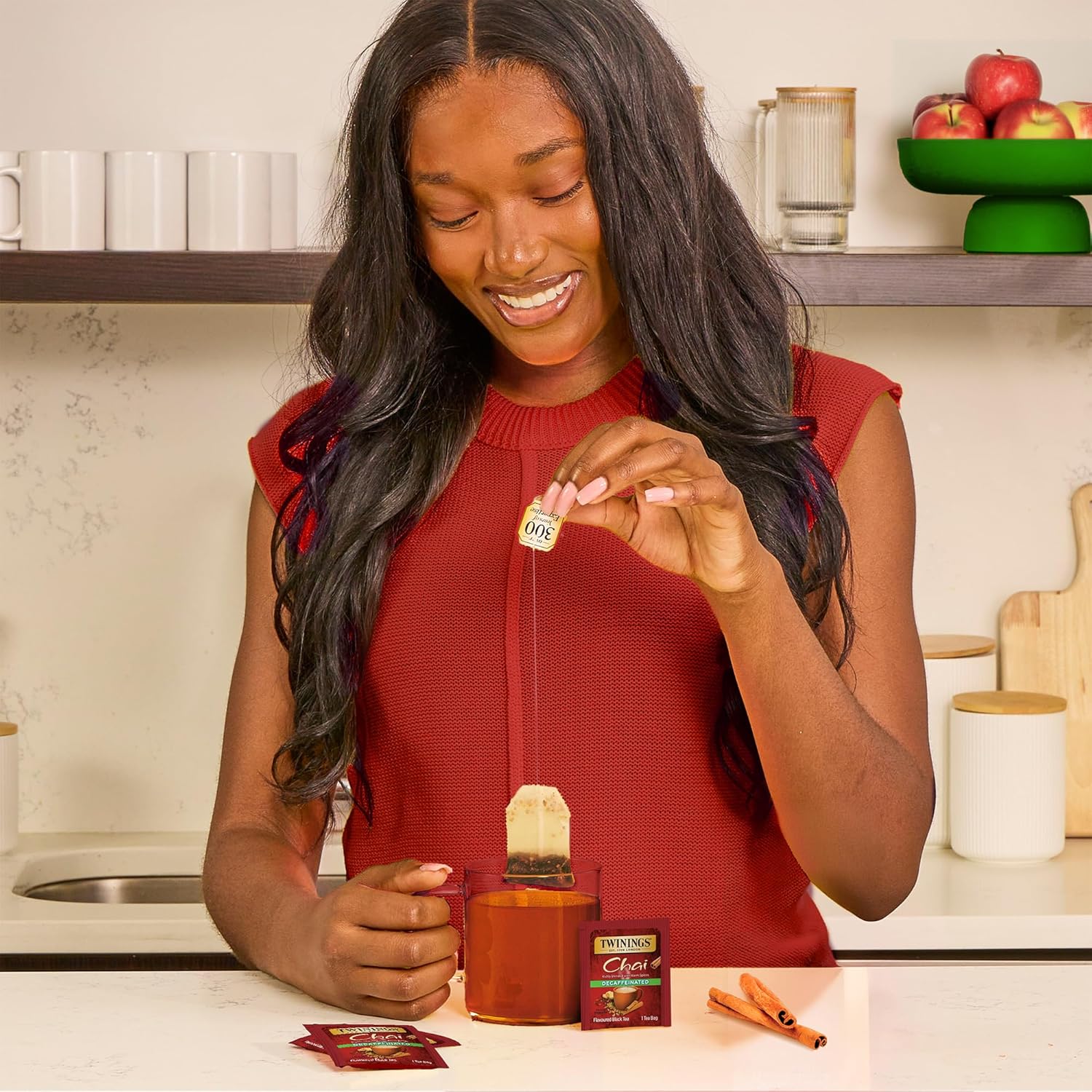 - CHAI BLACK TEA: Blended with the savoury spice of cinnamon, cardamom, clove and ginger for Chai with a bold, spicy taste and rich, vibrant aroma; Decaffeinated, 20 Count, Pack of 1