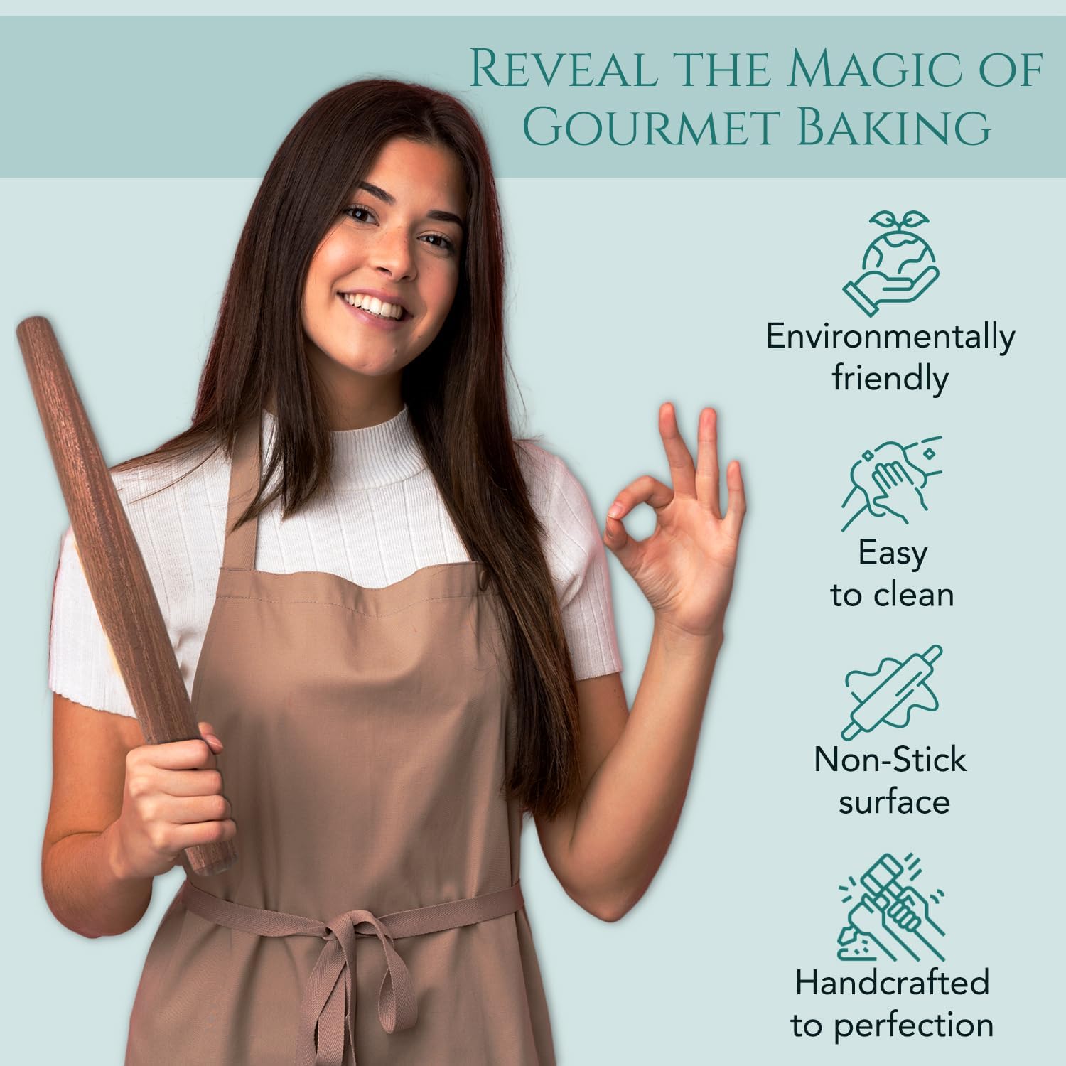 - PREMIUM MAHOGANY WOOD:- Experience the artistry of our mahogany french rolling pin, carefully handcrafted using top-tier Mahogany wood. Each rolling pin is a masterpiece, exuding sophistication with its opulent Mahogany tones, a tasteful addition to any kitchen. This wooden rolling pin guarantees exceptional performance, boasting an impeccable balance and weight distribution, courtesy of the premium Mahogany. Embrace the exquisite craftsmanship of this rolling pin.