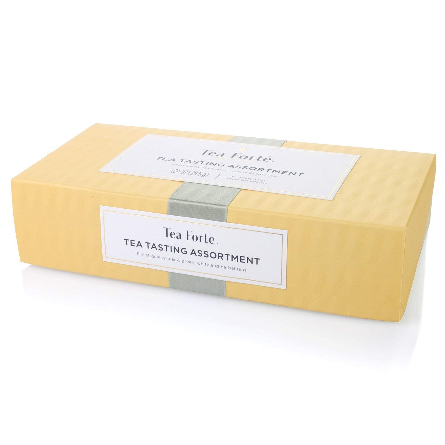 Tea Forte Tea Tasting Assortment Premium Petite Presentation Box Gift Set Sampler, 10 Count, 1 of Each Variety Individually Wrapped Handcrafted Pyramid Infuser Bags