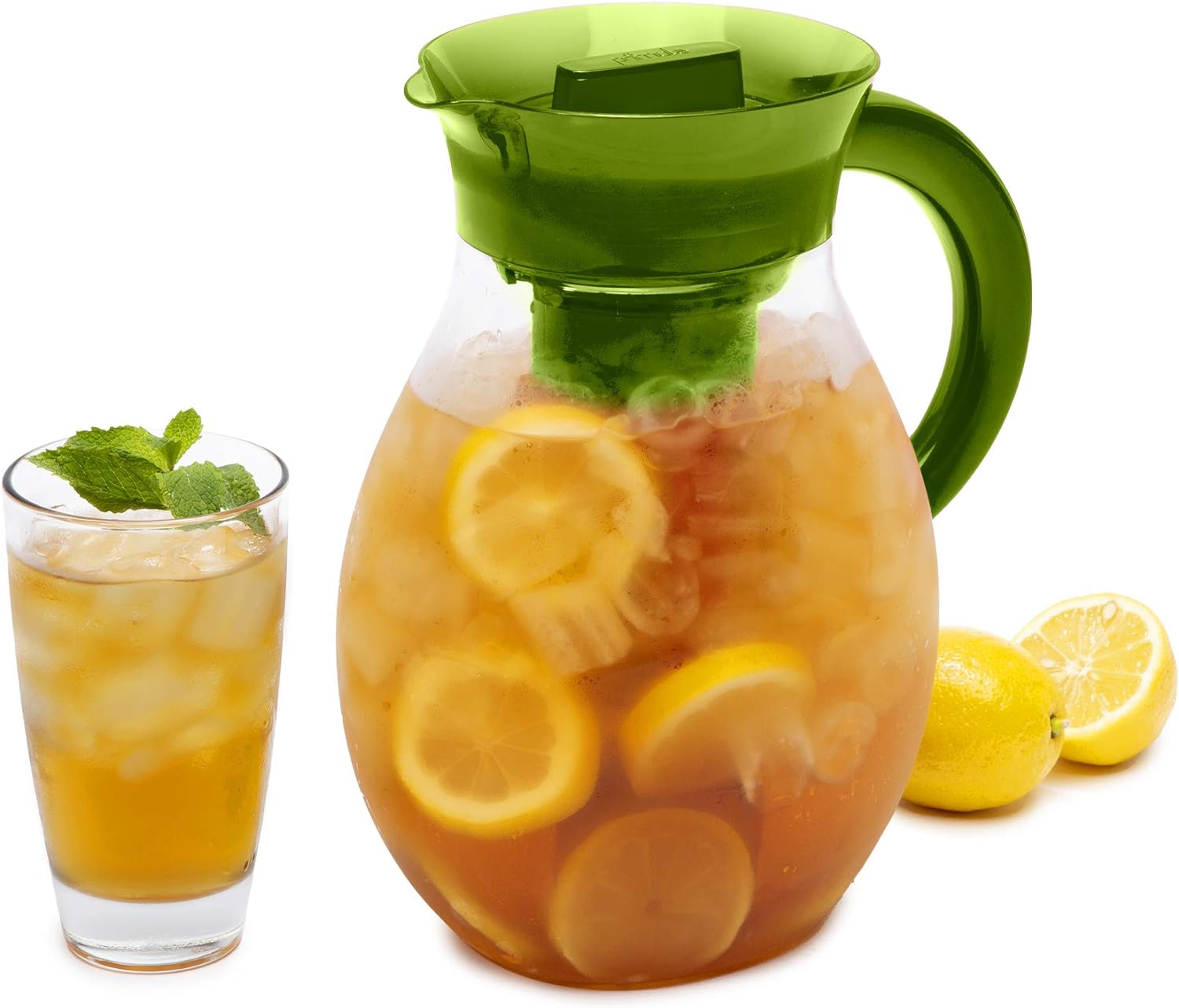 Primula The Big Iced Tea Maker and Infuser, Plastic Beverage Pitcher with Leak Proof, Airtight Lid, Fine Mesh Reusable Filter, Made without BPA, Dishwasher Safe, Green