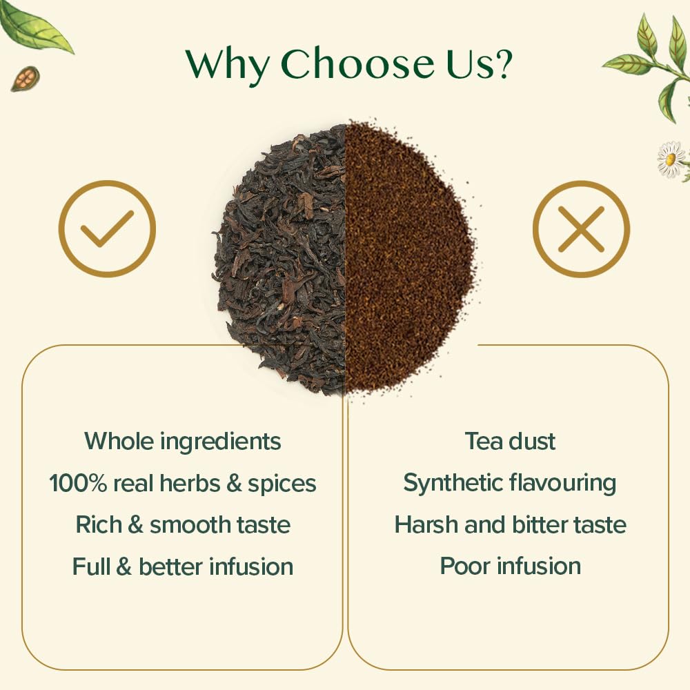 - DIRECTLY SOURCED FROM THE PREMIUM PLANTATIONS - Indulge in the finest tea experience with our Whole Loose Leaf Tea sourced directly from the premium plantations in India. Tea leaves are vacuum sealed & packed within 24 to 72 hours of harvesting to give you garden fresh tea with the amazing aroma, taste & the assurance of truly ethical, fair trade price to farmers. Preparation: 2g of loose leaf | 200 ml water at 100° C | 3 - 5 mins