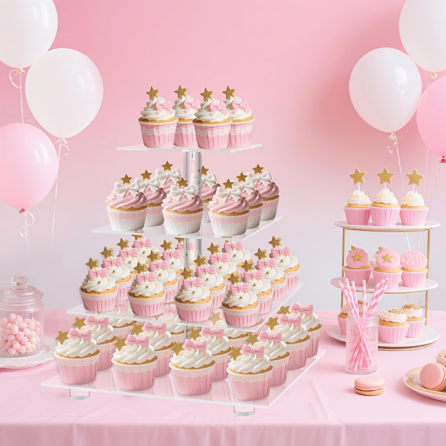 - Tower Design: Our cupcake stand has four acrylic plates with 4.7" distance between them. You can remove any of the superior plates and reassemble them freely. Each pastry rack is made with premium 4 mm thick acrylic, being very durable and resistant