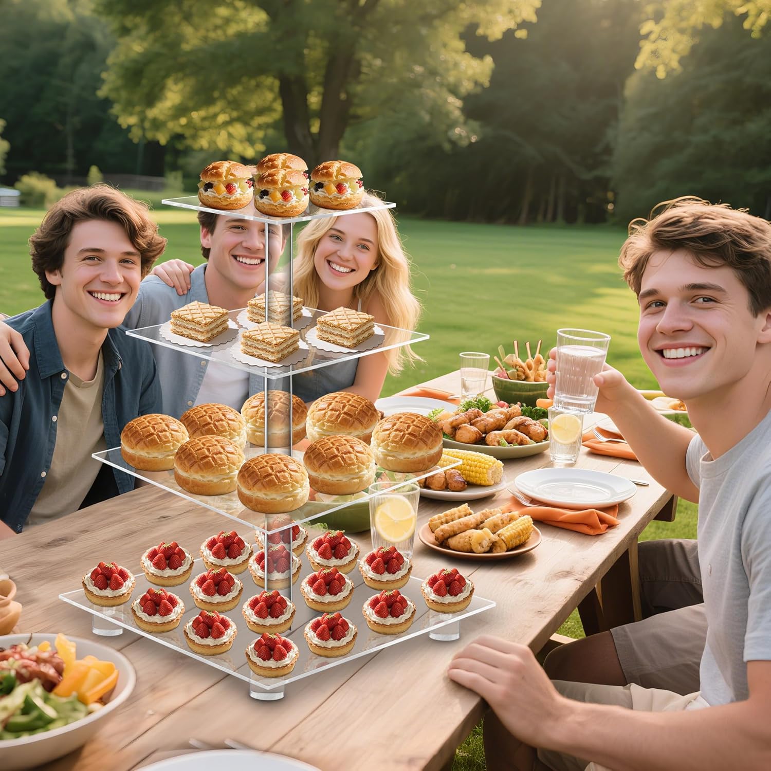 - Tower Design: Our cupcake stand has four acrylic plates with 4.7" distance between them. You can remove any of the superior plates and reassemble them freely. Each pastry rack is made with premium 4 mm thick acrylic, being very solid and stable.