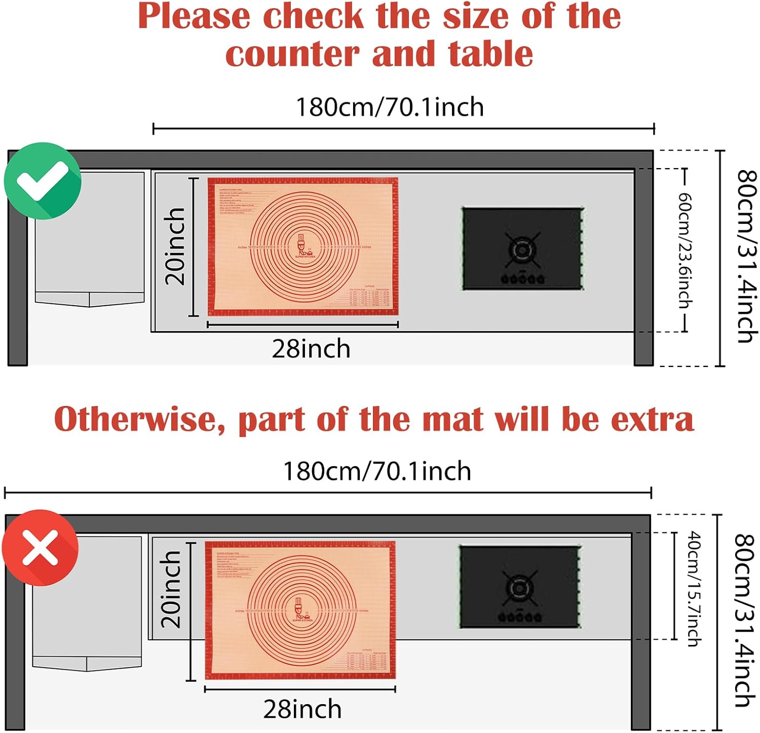 - Nonslip back side and Multifunction:We upgraded the back non-slip design.It will stay good on the table when rolling dough.It is good for Pastry Mat(20×28 inches),Table Mat,Baking Mat (Temperatures from -30°F to 470°F ),Pizza Pad and Countertop Mat.