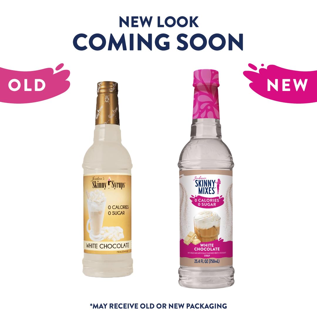 Jordan's Skinny Syrups Sugar Free Coffee Syrup, White Chocolate Flavor Mix, Zero Calorie Flavoring for Lattes, Protein Shake, Cocktail & More, Gluten Free, Keto Friendly, 25.4 Fl Oz, 6 Pack
