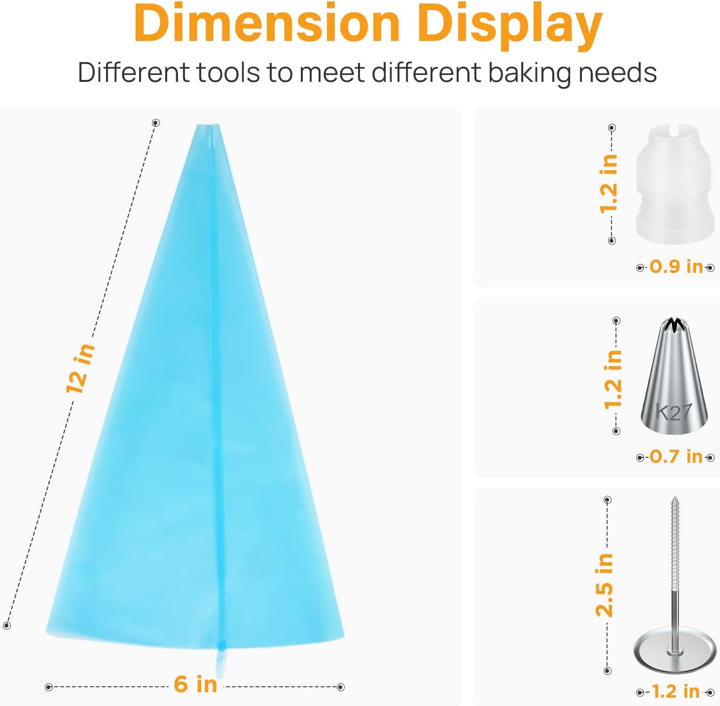 - Cake decorating supplies kits: 36 stainless steel numbered icing tips, 2 reusable silicone pastry bag, 2 reusable PP couplers, 2 flower nails, with which you can create all types of patterns on cake, cupcakes.