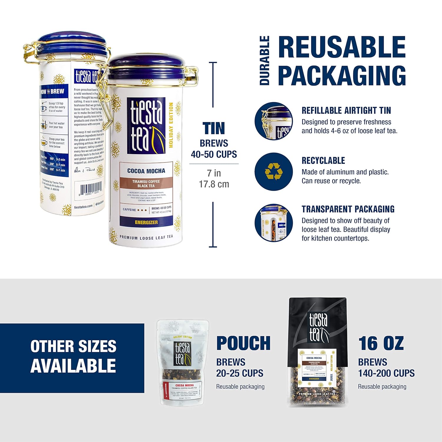 Tiesta Tea - Cocoa Mocha, Loose Leaf, Tiramisu Coffee Black Tea, Premium Blend, High Caffeinated Holiday, Make Hot or Iced, Brews Up to 50 Cups, 4.5 Ounce Refillable Tin