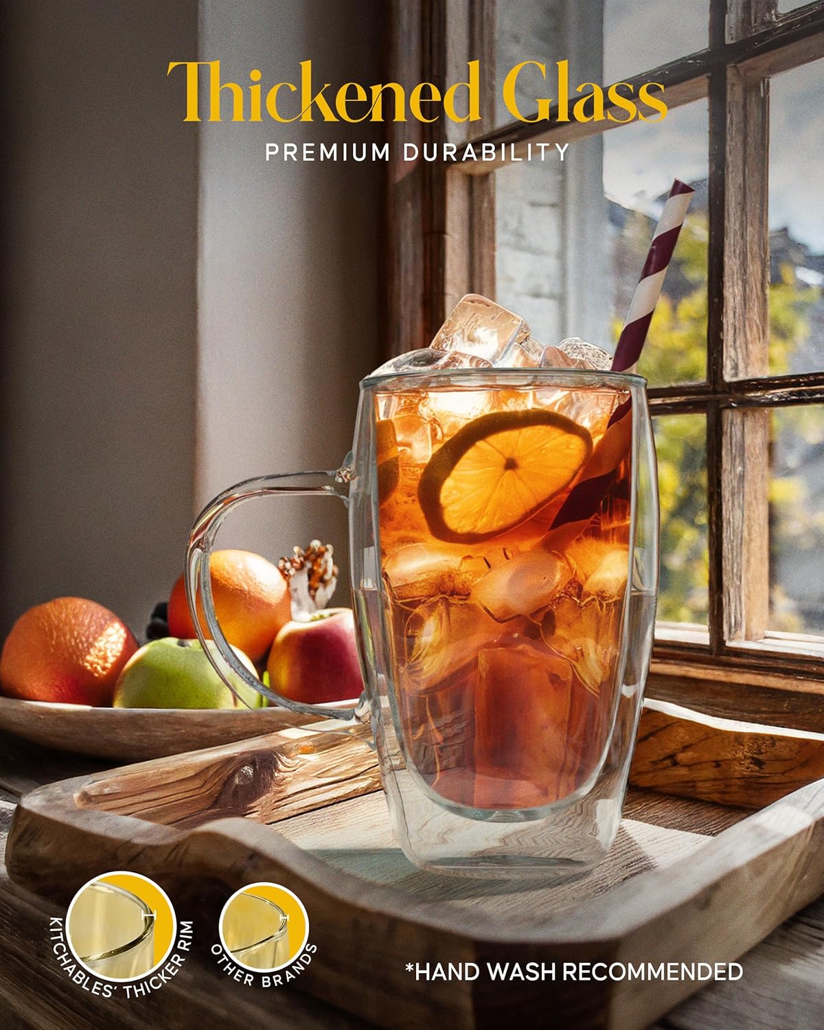 - Won’t Burn Your Fingers - Savor your piping hot drinks with ease immediately after brewing or steeping. Kitchables double walled glass coffee mugs set are crafted using heat transfer-resistant borosilicate glass with ergonomic handles for comfortable drinking.