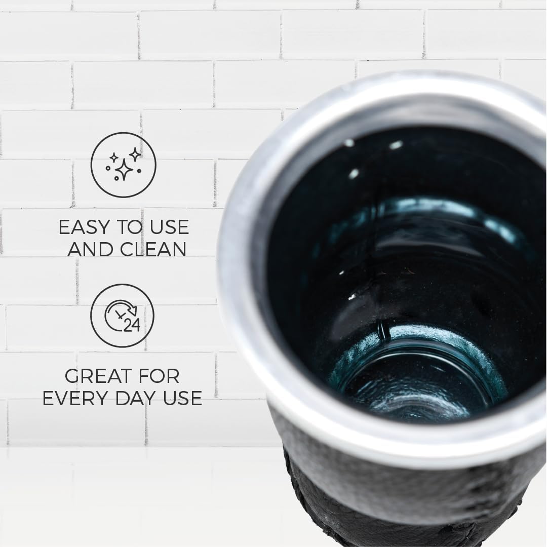 - THE SET - This mate set includes one glass mate cup wrapped in real leather with an aluminum ring on its top and one bombilla (straw).