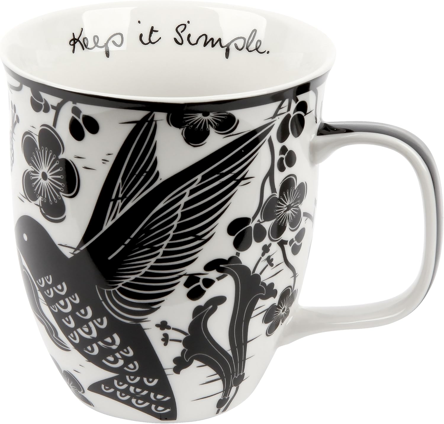 Karma Gifts 16 oz Black and White Boho Mug Hummingbird - Cute Coffee and Tea Mug - Ceramic Coffee Mugs for Women and Men, 1 Count (Pack of 1)