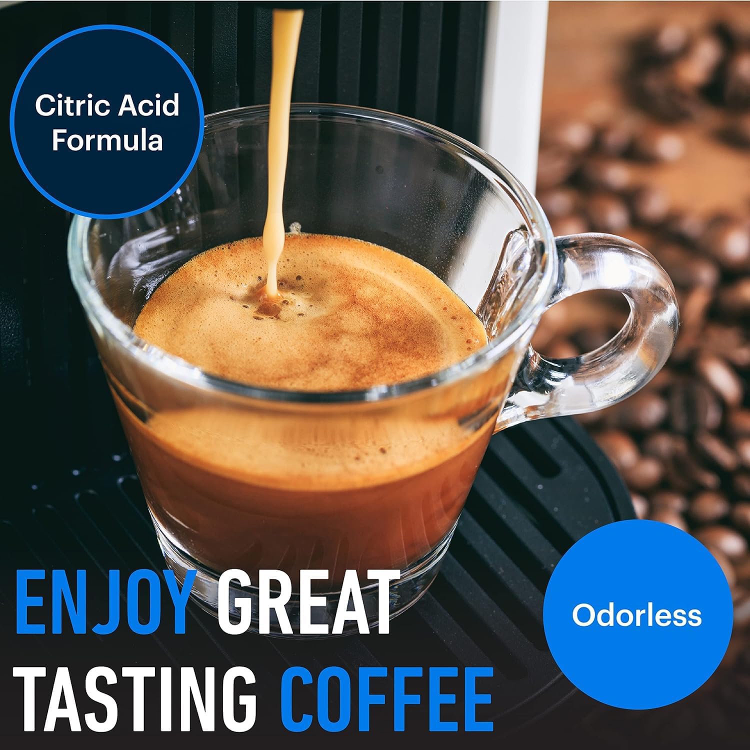 - Safe, Gentle and Made in USA: Our coffee maker cleaner and descaler is made from natural concentrated citric acid that is odorless, powerful, and safe for your coffee maker and your family. Plus, the bottle is made from recyclable 100% PET.