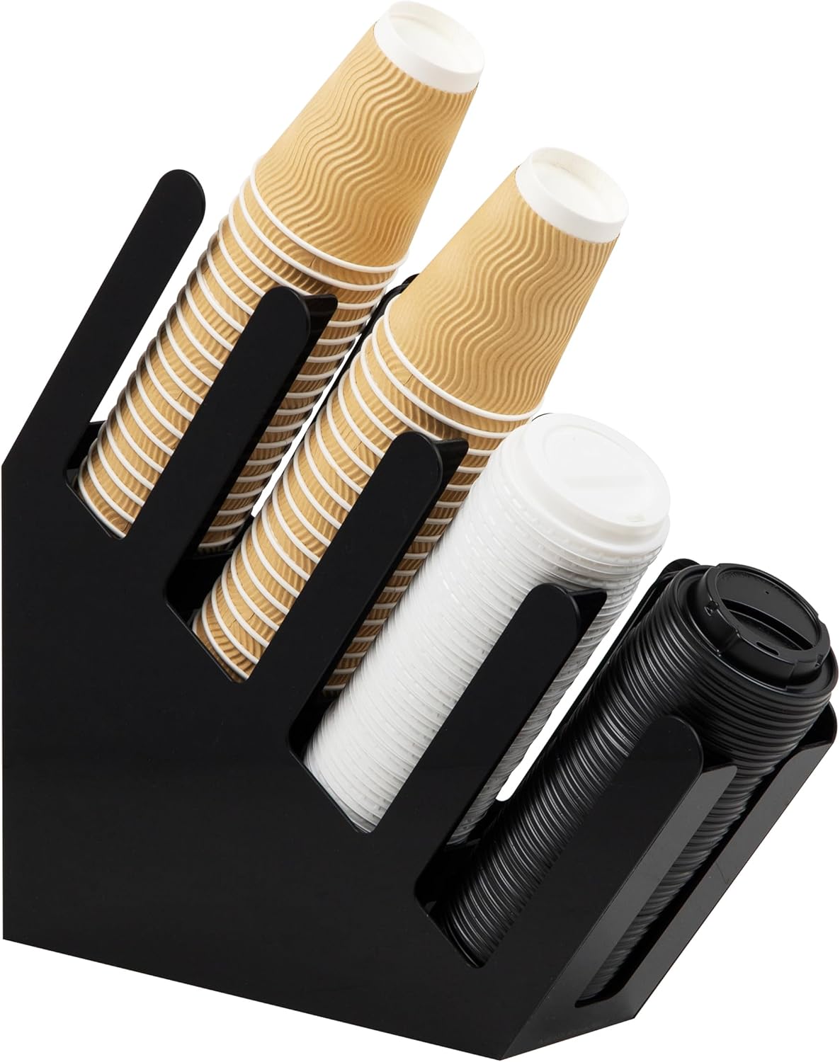 - Sleek and functional design: The tiered 4-compartment graduated coffee cup dispenser features a stylish design that can easily fit between coffee makers and syrup dispensers, maximizing space efficiency