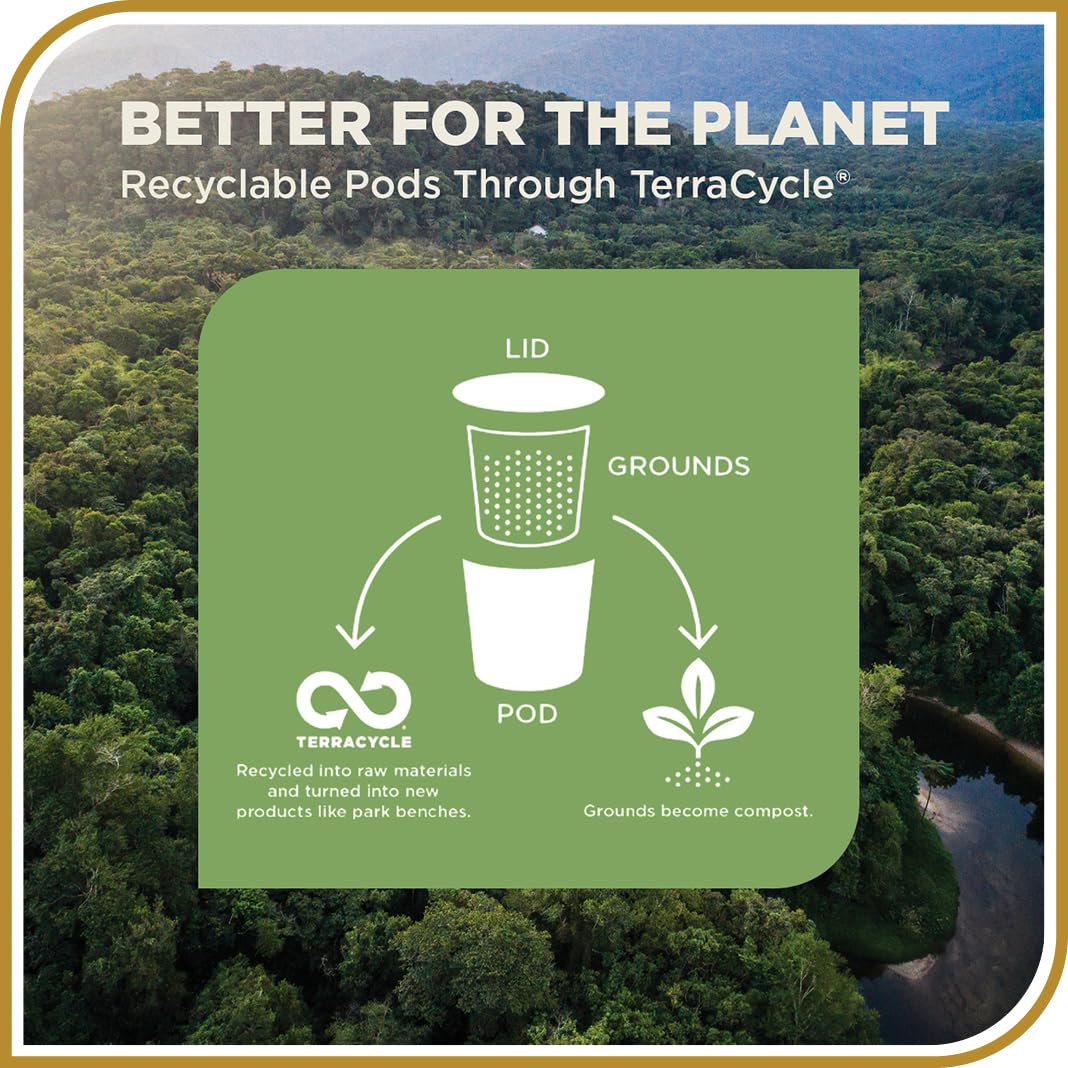 - Sustainable Practices: Our coffee pods are recyclable through TerraCycle, reflecting our commitment to environmental responsibility. Enjoy your coffee knowing you're supporting a brand dedicated to sustainable coffee production.