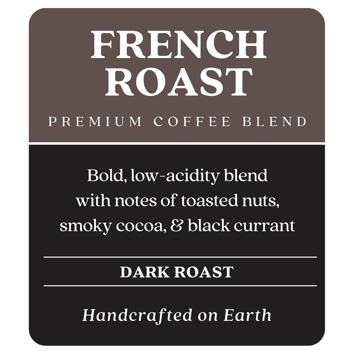 - PREMIUM COFFEE BLEND: Born in the cafes of Western Europe, French Roast is a naturally complex coffee that captivates the senses. As it brews, a rich, smoky aroma fills the air, inviting anticipation. The deep flavor delivers an indulgent palette of toasted nuts, smoky cocoa, and subtle hints of black currant, creating a boldly satisfying experience with every sip.
