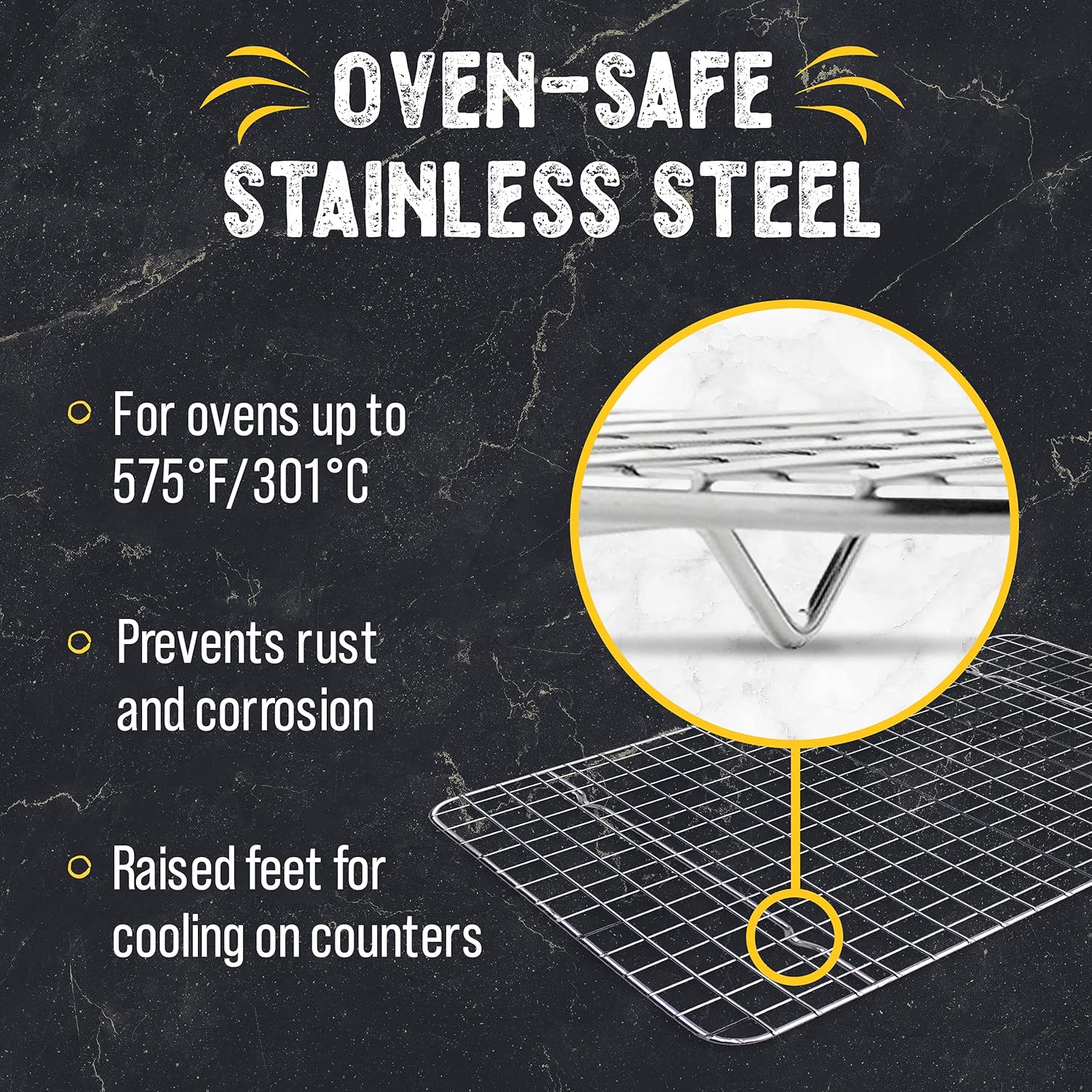 - Oven Safe and Easy to Clean: The solid stainless steel construction of our wire rack set makes them perfect for cooking and cooling. Simply pop them in the dishwasher when you're all done!