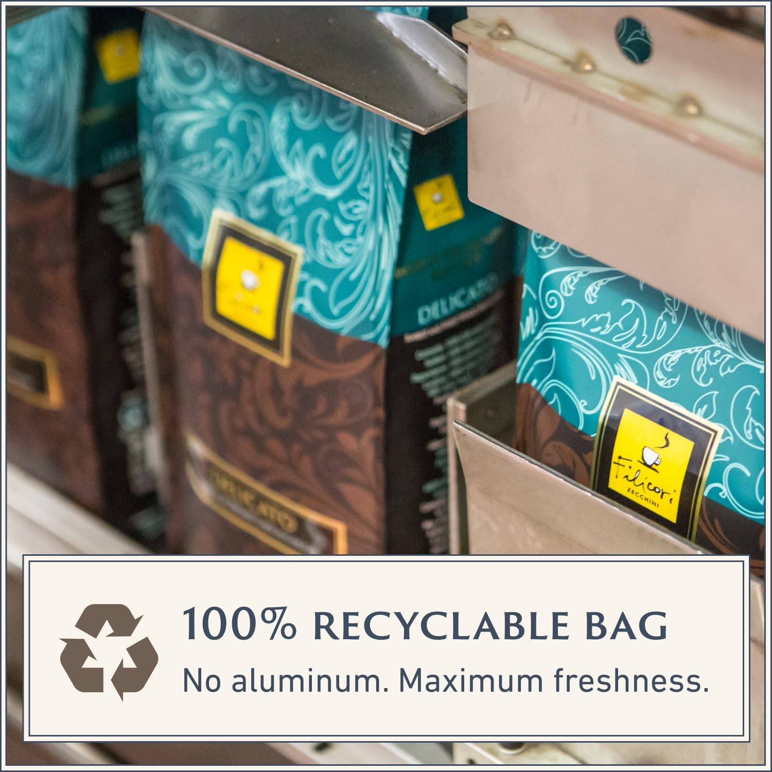 Filicori Zecchini Italian Espresso Beans – Whole Bean Coffee Medium Roast Arabica & Robusta Blend – Low Acidity, Slow Roasted – Delicato 2.2lb Bag
