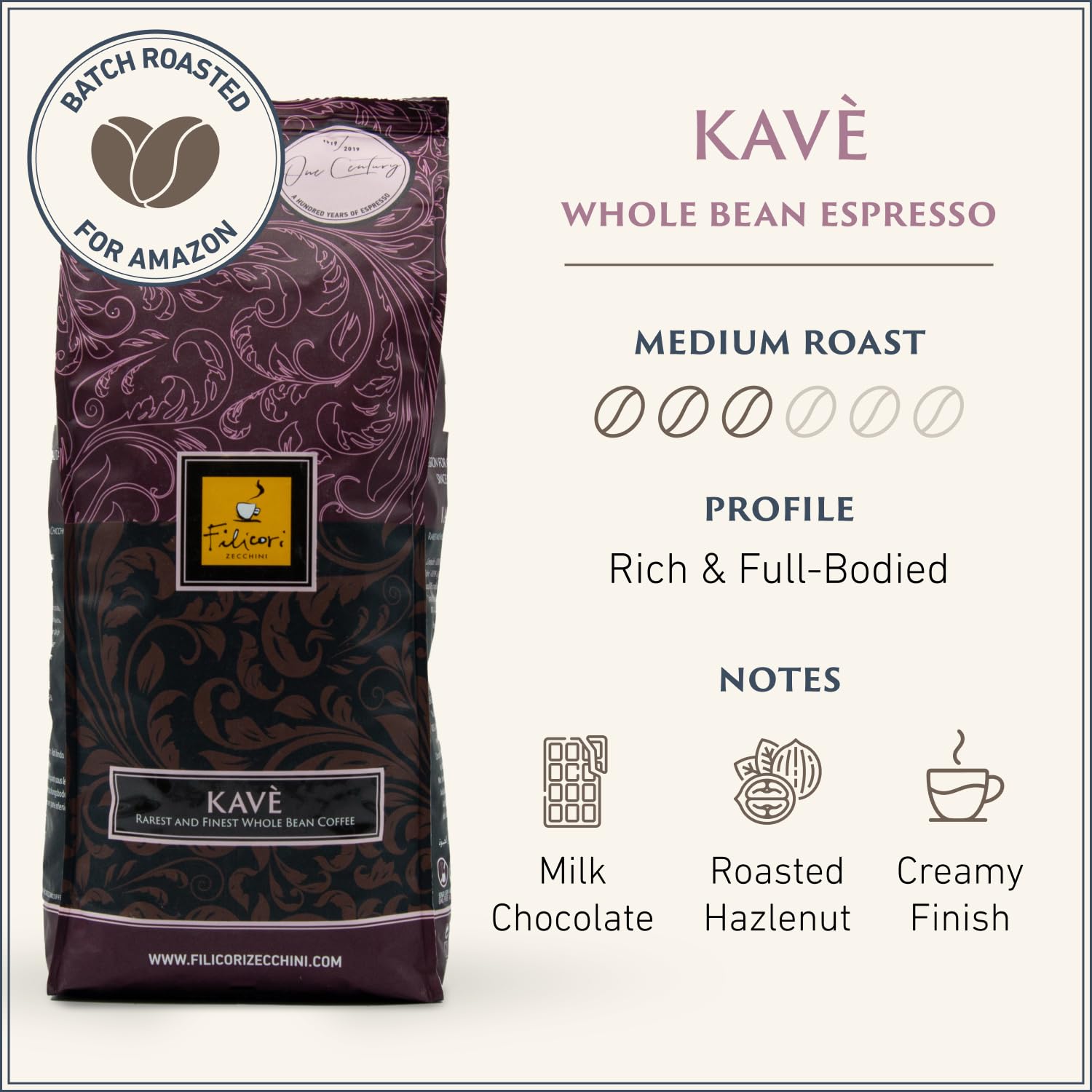 Filicori Zecchini Italian Espresso Beans – Whole Bean Coffee Medium Roast Arabica & Robusta Blend – Low Acidity, Slow Roasted – Kavè 2.2lb Bag