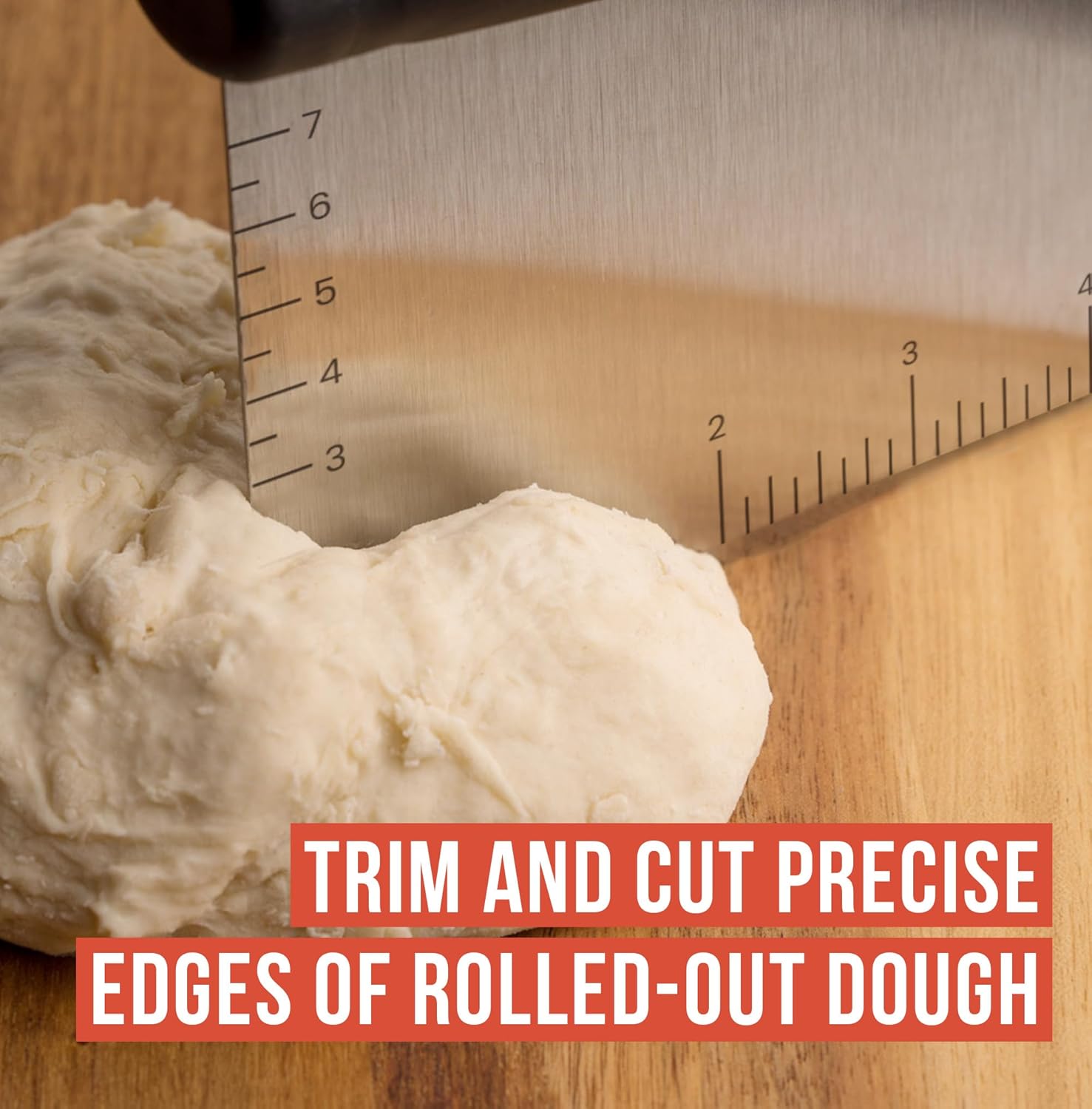 - MULTI-PURPOSE TOOL FOR EVERY KITCHEN - This bench scraper stainless steel is perfect for cutting dough, portioning bread, and slicing pizza. Use it as a metal scraper tool kitchen to chop veggies, dice herbs, or clean counters. It’s also great for transferring ingredients or creating precise frosting lines. Durable, versatile, and essential for every kitchen task!
