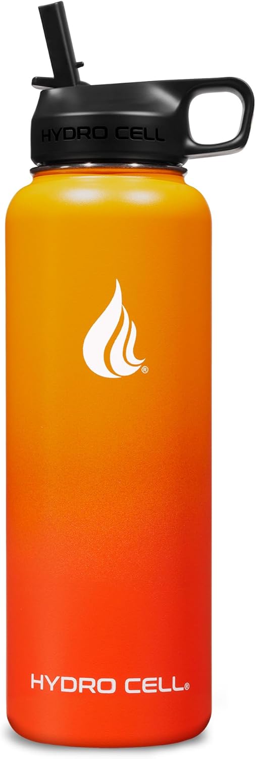 HYDRO CELL Stainless Steel Insulated Water Bottle with Straw - For Cold & Hot Drinks - Metal Vacuum Flask with Screw Cap and Modern Leakproof Sport Thermos for Adults (Red/Orange 40oz)