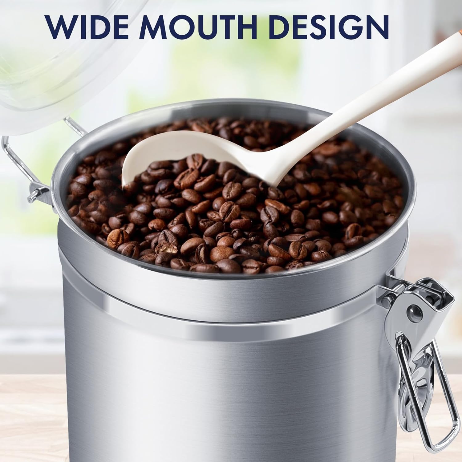 - Easy to Use and Clean --- ENLOY stainless steel kitchen canisters are made with a wide 4.7" opening which makes it easy to use full size 1 cup measuring scoops. The canisters are dishwasher-safe, however we recommend hand-washing to protect the finish. One Piece Design will not hide dirty. A quick wipe with a damp cloth is sufficient for a light cleaning.