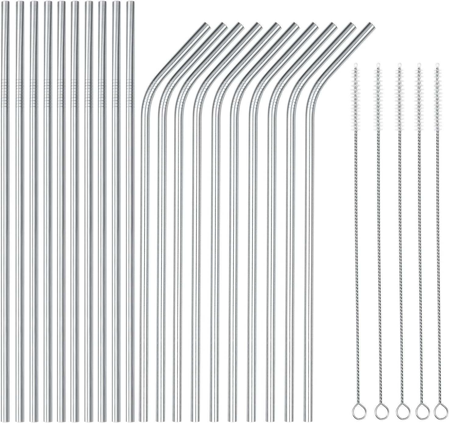 - Include 10 straight and 10 bent metal straws, 5 pcs brush can clean, the straws all through those straws can easily fit through the lid slot of your 20oz 30oz stainless rumbler tumbler.
