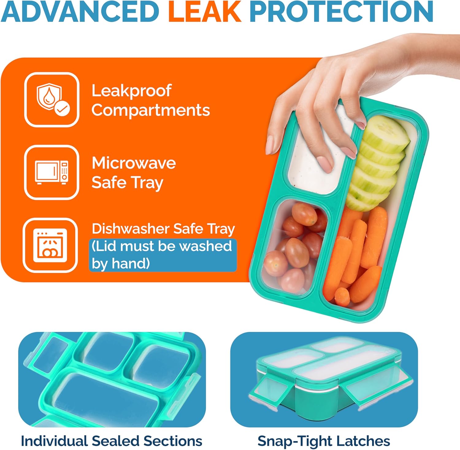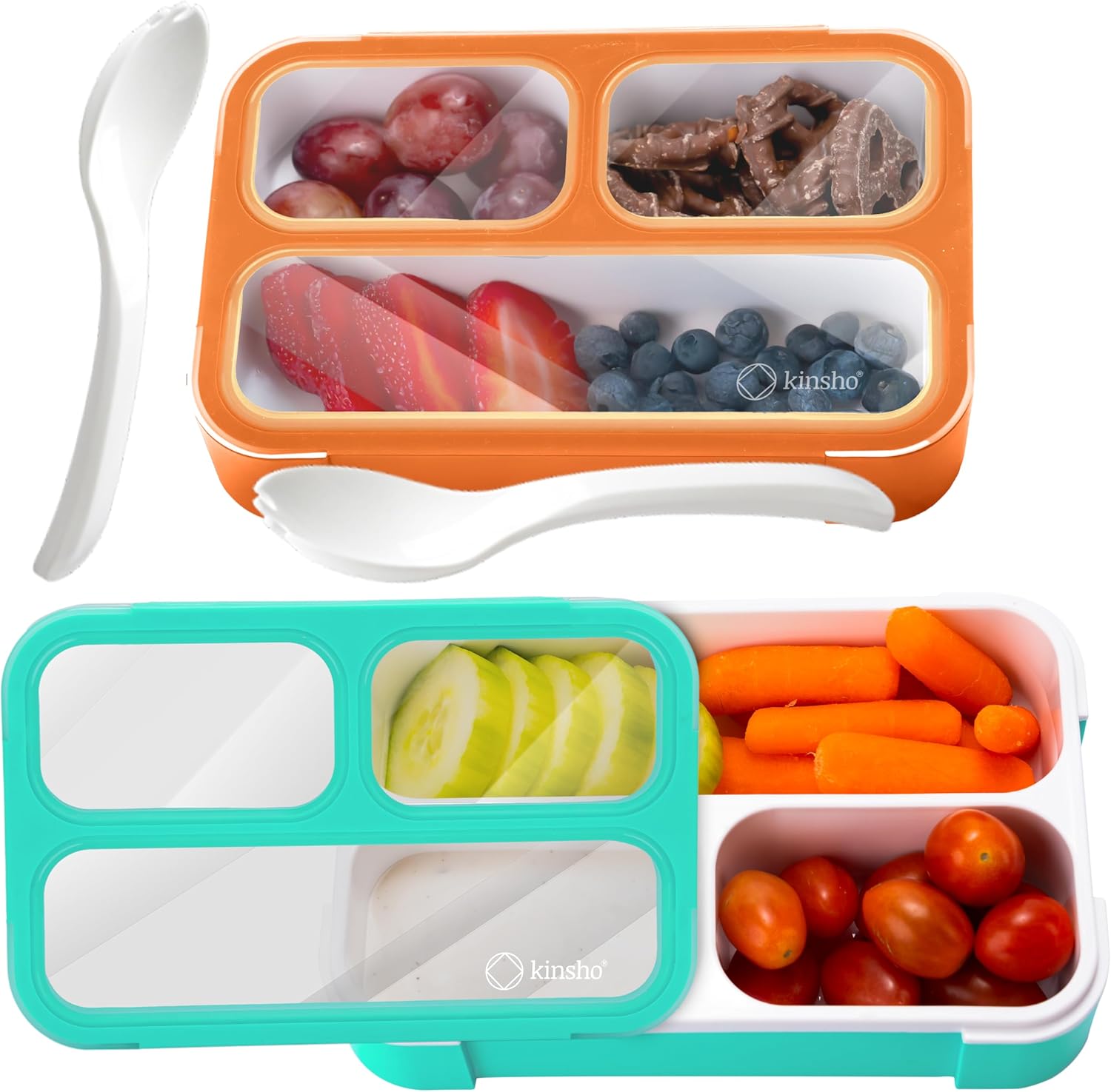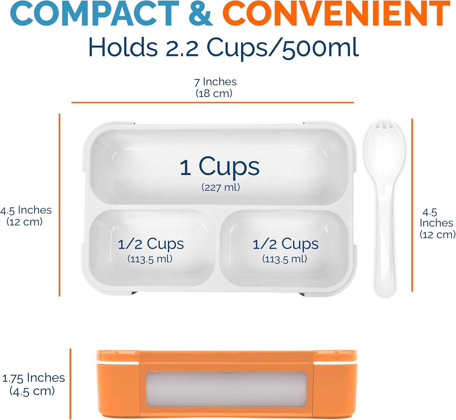 MINI Lunch-Box Snack Containers for Kids | SMALL Bento-Box Portion Container | Leak-proof Boxes for School Work Travel | Best for Adults Boys or Girls | Blue + Orange Set of 2