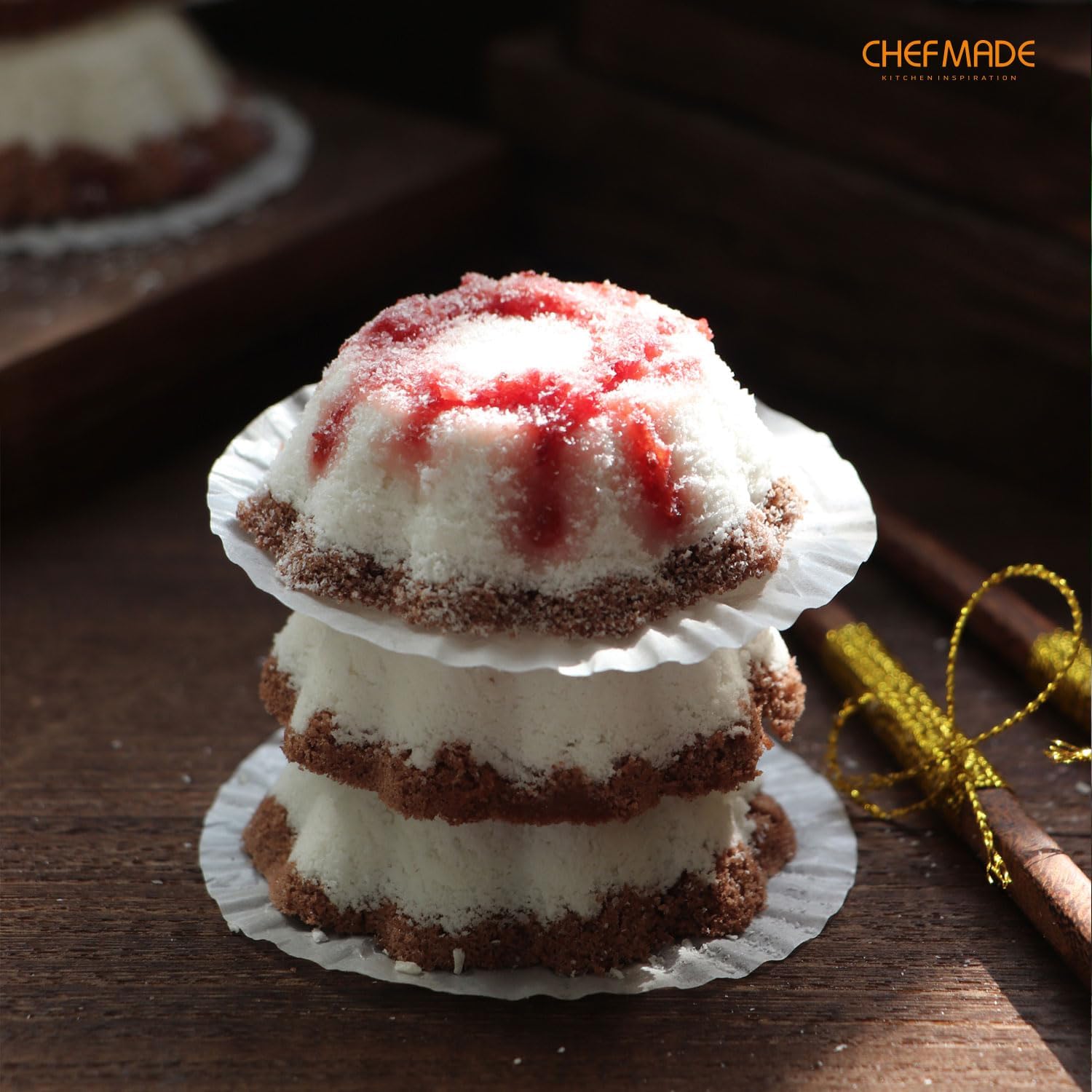 CHEFMADE Mini Pudding Pan Set, 3-Inch 4Pcs Non-Stick Egg Tart Mold Flower-shaped Pie Bread and Cake Pan Bakeware for Oven and Instant Pot Baking (Champagne Gold)