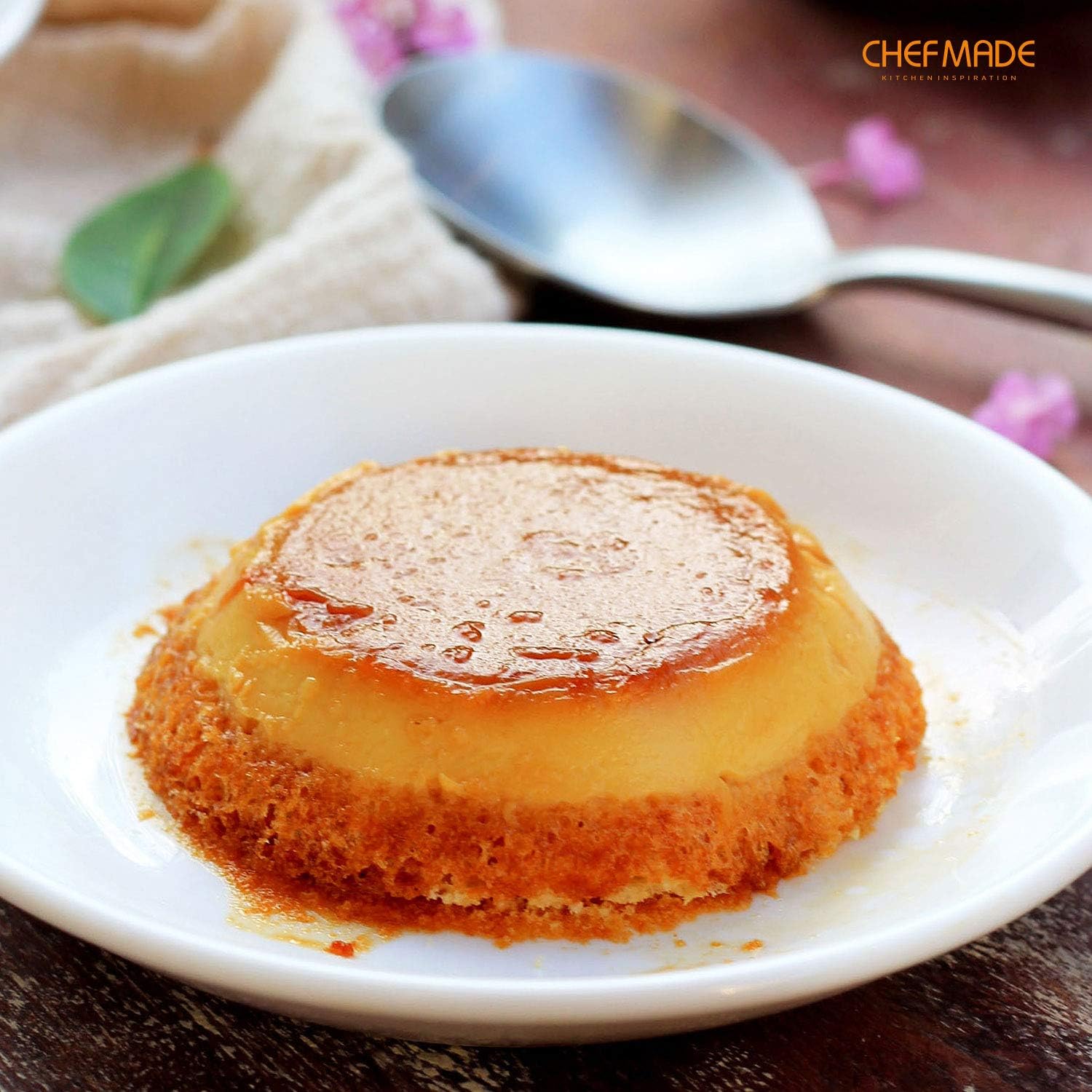 CHEFMADE Mini Pudding Pan Set, 3-Inch 4Pcs Non-Stick Egg Tart Mold Round Mini Cake and Loaf Bakeware for Oven and Instant Pot Baking (Champagne Gold)