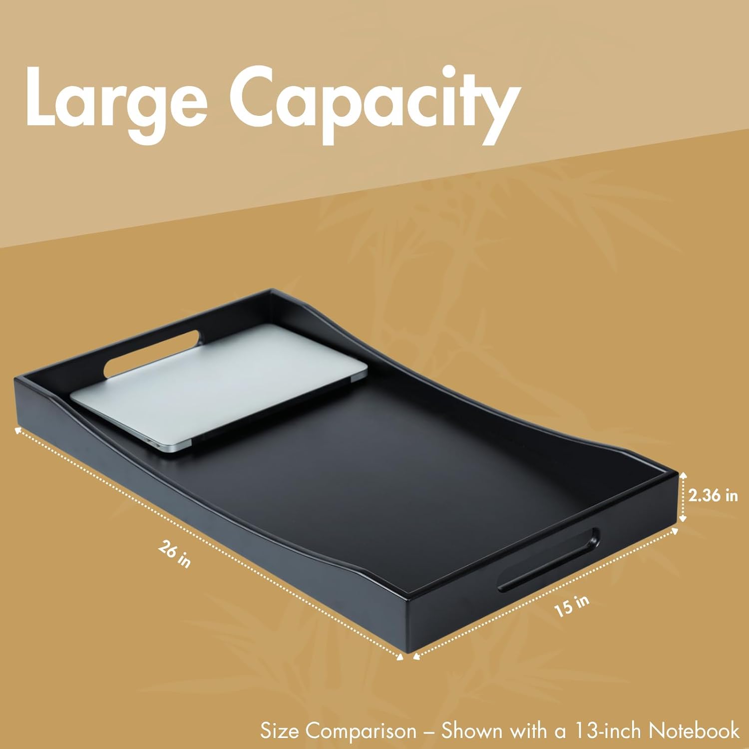 GOBAM Bamboo Extra Large Ottoman Tray, 26 x 15 inches - Wooden Tray for Dining Table & Parties, Serving Tray with Handles for Food, Cheese, Snacks, Tea, Coffee & Wine