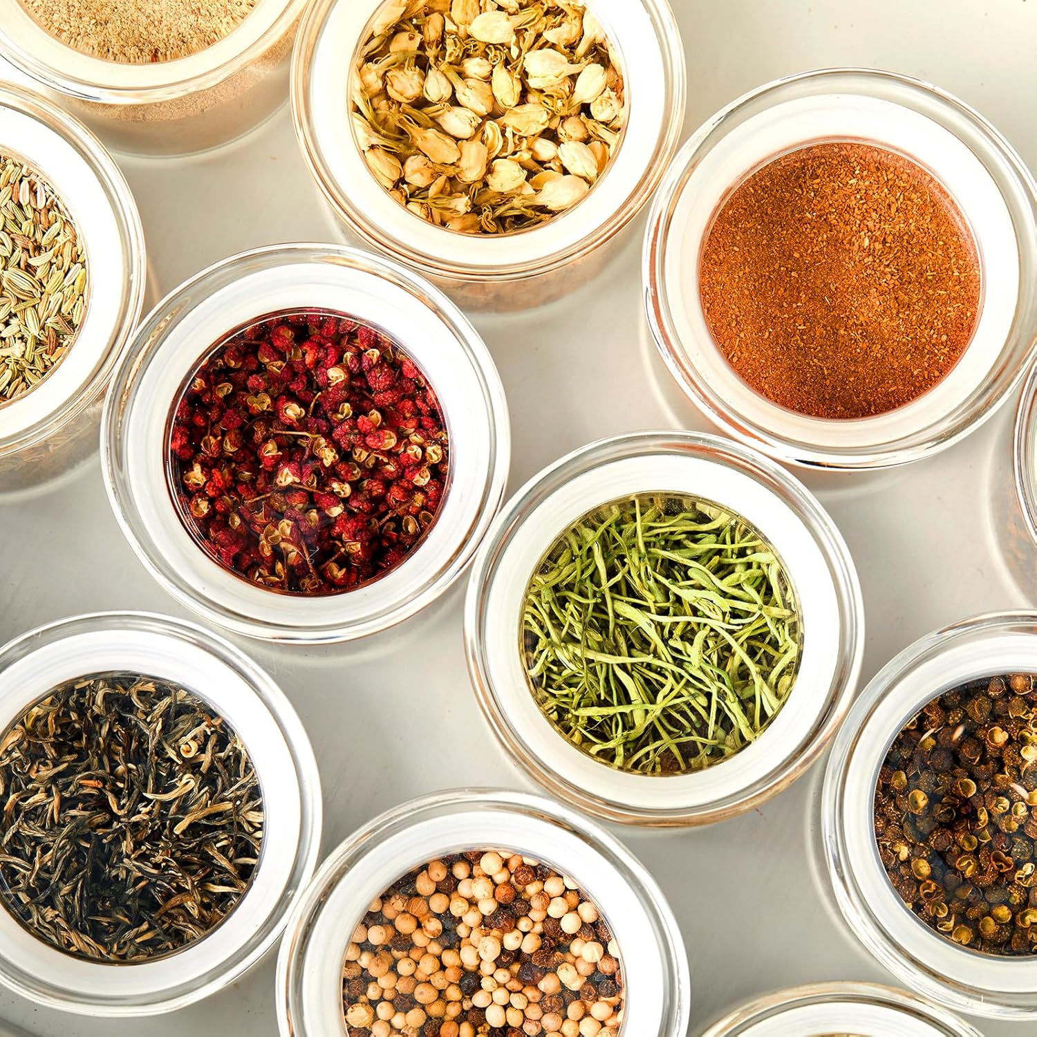 - STYLISH, SIMPLICITY STORGE JARS: Zens sleek glass canisters with airtight lids, the neat style keeps your kitchen tidy never like before. the hand-blown clear glass lid makes it very easy to find when storing spices in your drawer. It also doubles as a cute food tray for your favourite snacks which other bamboo lids does not. Isn’t it time to building your full pantry with a new makeover?