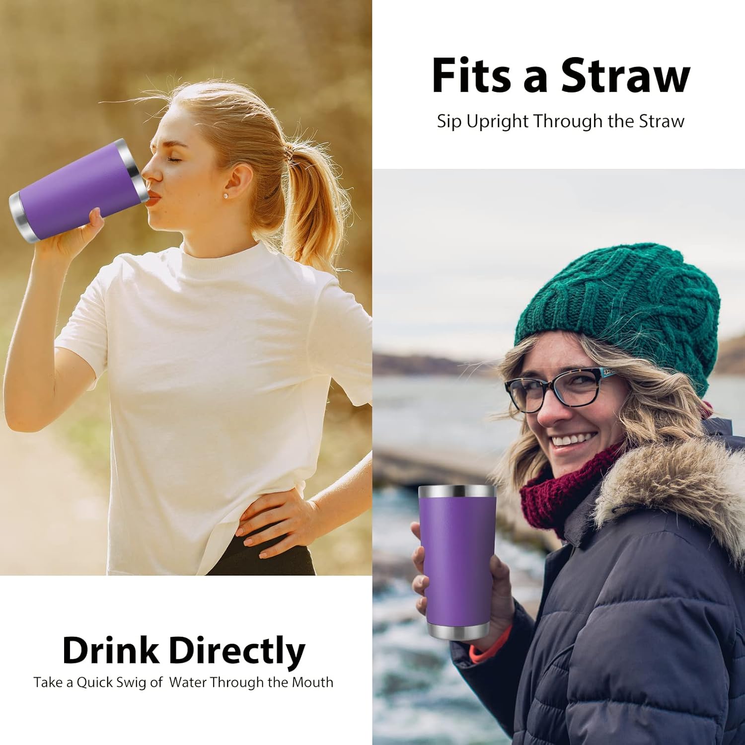 DOMICARE 20oz Stainless Steel Tumbler Bulk with Lid, Double Wall Vacuum Insulated Travel Mug, Powder Coated Coffee Cup (Powder Purple, 1)