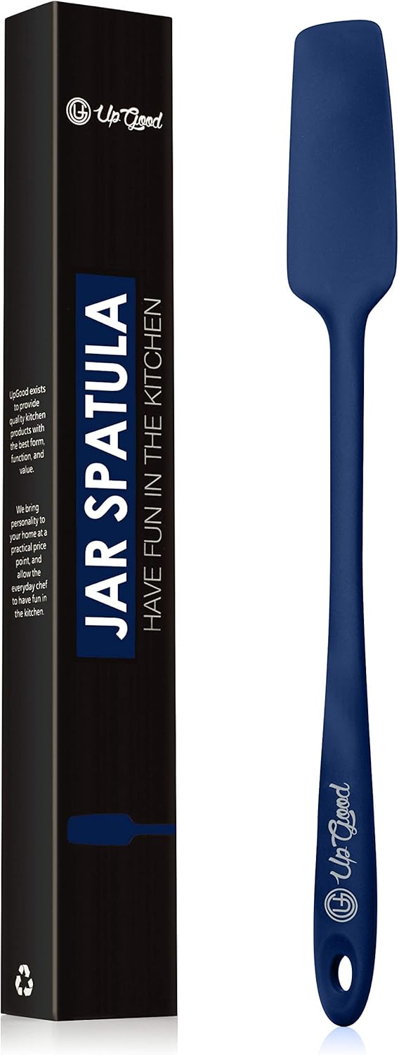 Silicone Jar Spatula | 600F Heat Resistant Non-Stick Rubber Scraper | Perfect for Jars, Smoothies, Blenders | One Piece Utensils | Durable Kitchen Cookware (UpGood Professional Spatulas, Blue)