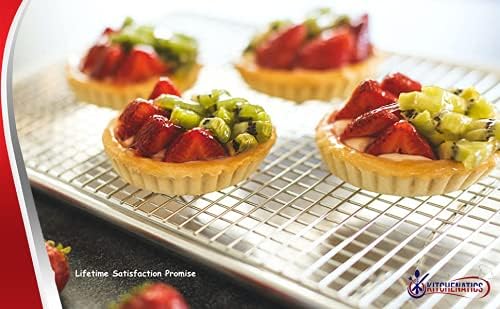 - Built for Reliable, Long-Lasting Use: Our 10.6 x 15.6 jelly roll sheet pan and baking rack are safe to use with food with no chrome coating, rust-resistant, no sharp edges, no flaking, bowing, or bending. The cooling rack has patented multiple welds which makes it unique.