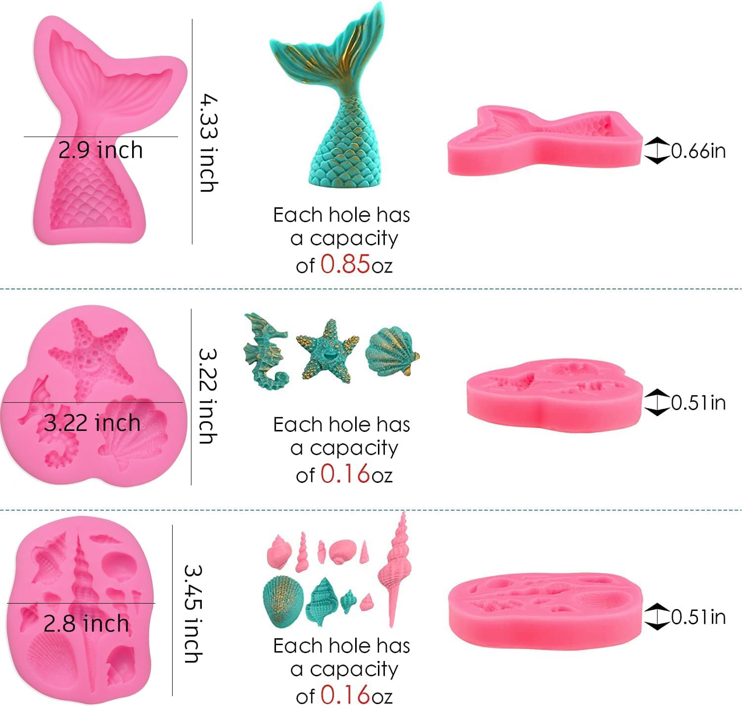 SAKOLLA Mermaid Theme Silicone Fondant Mold - Mermaid Tail Seashell Starfish Hippocampus Conch Silicone Mold for Under The Sea Cake Decoration, Gum Paste, Polymer Clay, Cupcake Decor, Sugar Craft