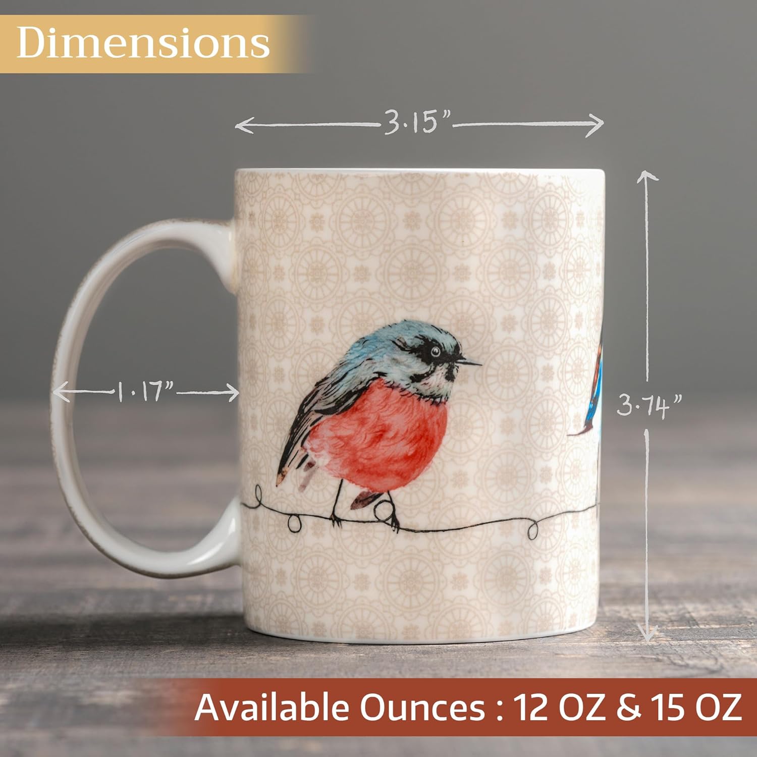 Maison d' Hermine Coffee Mug with Handles Fine Bone China Mugs Pack of Two Tea Cups for Hot Beverages Cappuccino Latte Home Restaurant Office Perfect for Gift (Birdies On Wire, 12 Ounce)