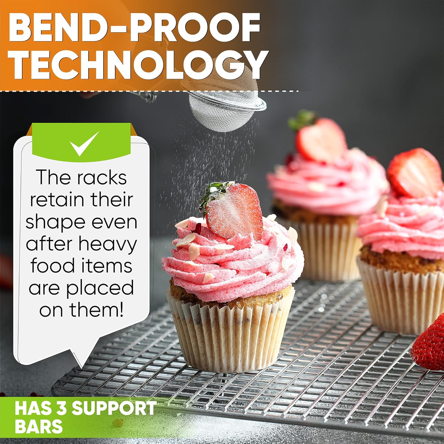 - So Versatile You'll Wish You Had Discovered Them Sooner - Broil, Bake, Roast, Decorate or Cool with this set of 2 11.8" x 17" racks. They are engineered for supreme durability and rust/warp-resistance with Heavy Gauge Steel.