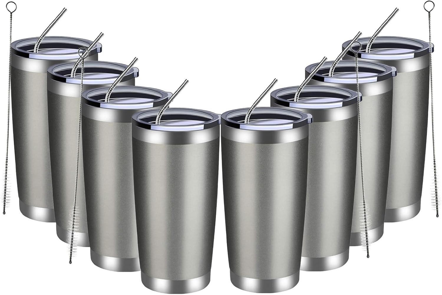 MEWAY 20oz Tumbler 8 Pack Double Wall Vacuum Insulated Travel Mug Bulk, Stainless Steel Tumblers with Lid and Straw, Durable Powder Coated Coffee Cups for Cold & Hot Drinks (Cold Gray, 8)