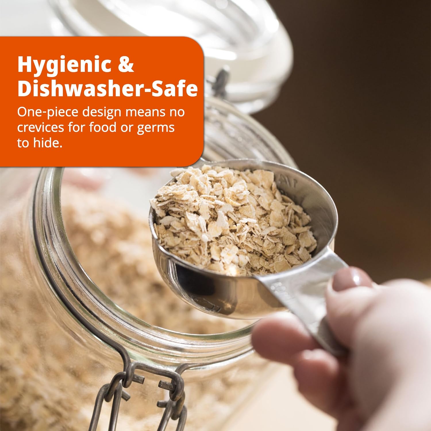 - Heavy-Duty 18/8 Stainless Steel – Rust-proof, bend-resistant construction that outlasts flimsy plastic or cheaper 18/0 steel sets. Perfect for thick ingredients like brown sugar or honey.