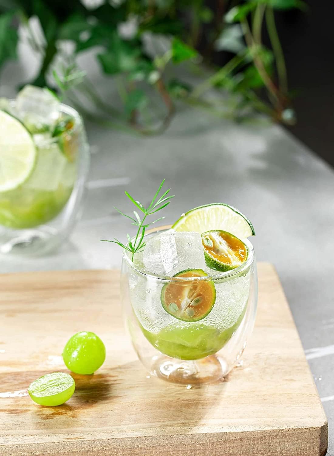 Octavius Double Wall Glass Cup Set | Perfect for Hot & Cold Beverage Lovers | (Set of 2) 8 Ounces Glass Clear Coffee Cups | Cups For Tea, Cappuccino, Latte, Hot Beverages Cup