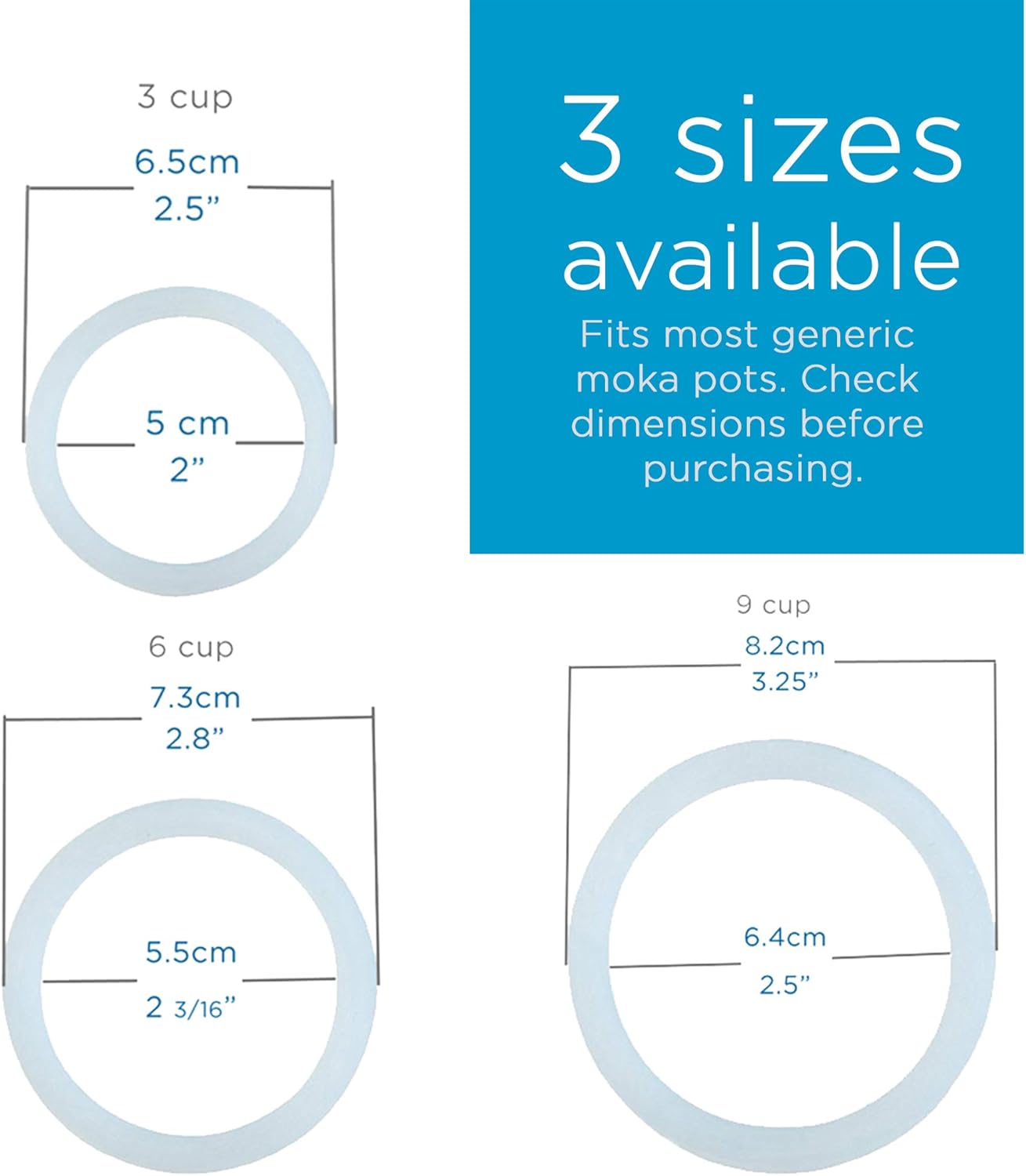 - ⭐ STANDARD GROSCHE DESIGN: Our gasket seal and filter screen set follows Moka espresso makers' standard GROSCHE design and size specifications. Choose the correct size (3 cups, 6 cups, or 9 cups) to match your GROSCHE Milano perfectly. Please verify the scope for other brands before ordering to ensure a high-quality silicone seal ring replacement.