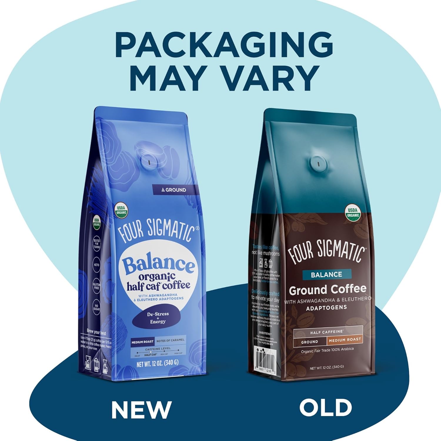 Four Sigmatic Organic Balance Adaptogen Ground Coffee | Medium Roast USDA Organic Coffee with Ashwagandha, Chaga Mushroom, Eleuthero and Tulsi for Focus and Energy Boosting | 12oz Bag