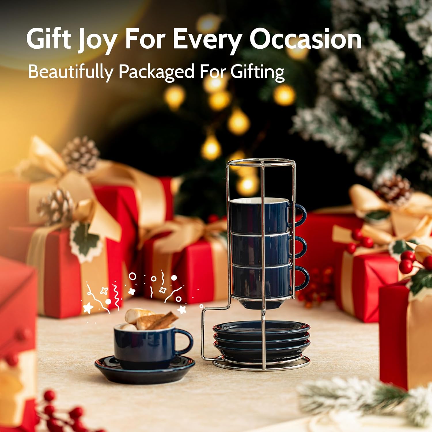 - REDEFINING CONVENIENCE IN EVERY CORNER: Transform your living space with Space-Saving & No Mess perfection. Our innovative stacking rack design keeps your cup set together, occupying just the space of one saucer. Say goodbye to clutter – even the tiniest nook becomes tidy with this compact solution, ensuring your coffee corner remains pristine and mess-free. Enjoy the simplicity of organized living.