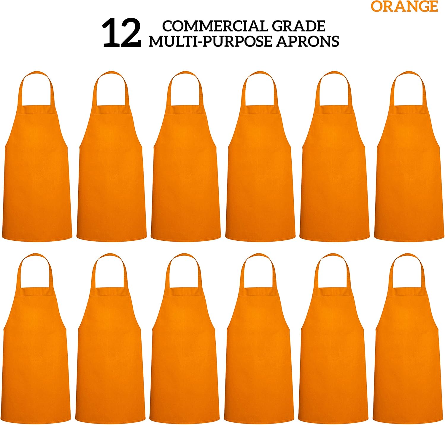 GREEN LIFESTYLE 12 Pack Professional Chef Apron – Grilling Aprons for Men, Waterproof Cooking Apron for BBQ, Work or Restaurant Use, Kitchen Aprons for Women – Orange, No Pockets