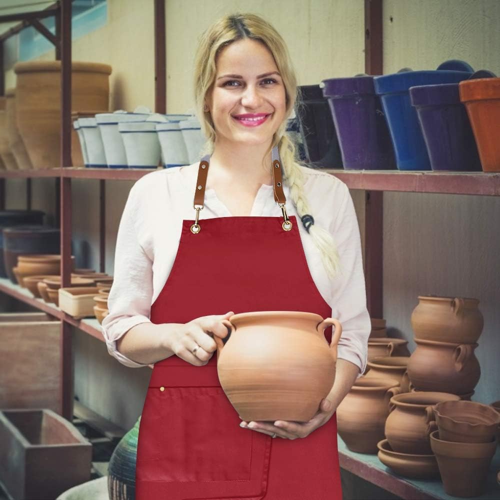 - Unique split apron design,it's very convenient when you take a seat and making ceramics,painting etc.This apron is a good choice for home, kitchen, restaurant, salon, cosmetology, coffee shop, flower shop, bar, bistro, farmhouse, garden, etc