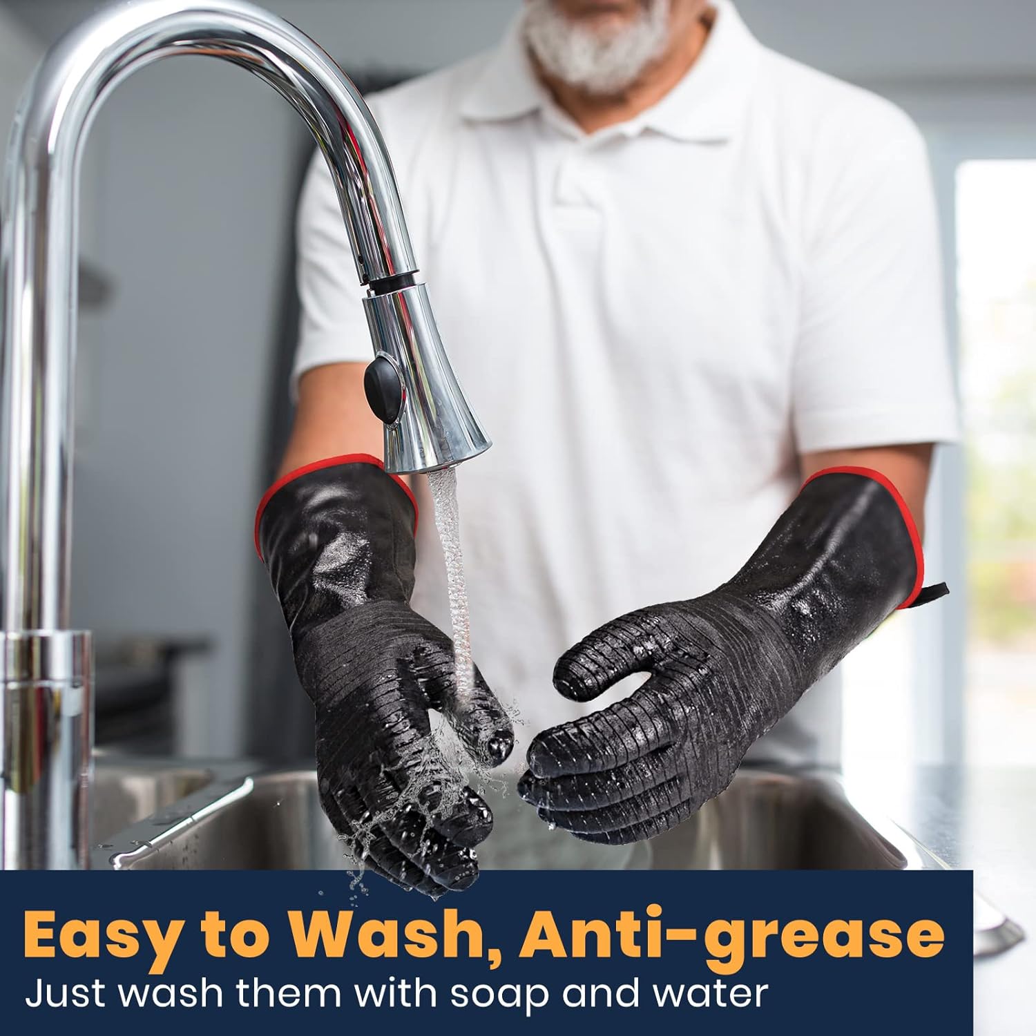 - Heat Resistance: 18-Inch 932°F Protection: Specially designed for extreme heat environments; Professional-grade silicone coating withstands grills, smokers and oven use; Extended sleeve length exceeds common kitchen gloves