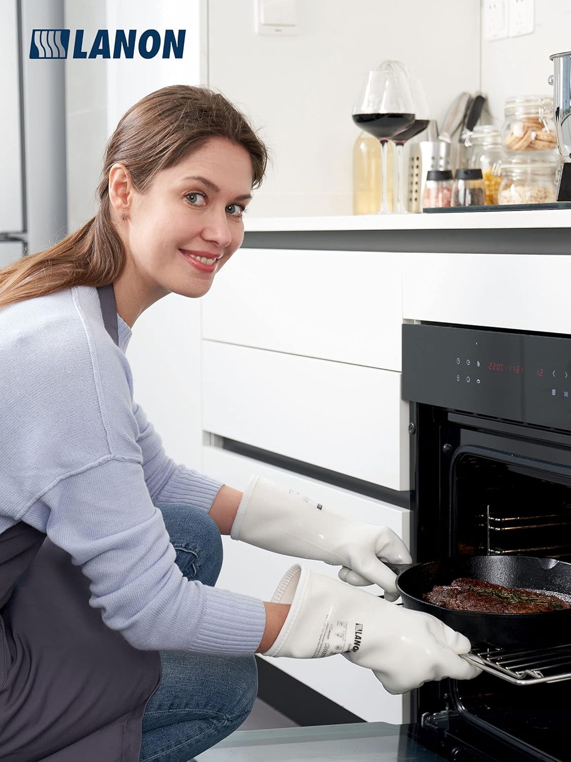 - Next level performance - LANON oven mitts for hand protection are certificated by CE 2777, with Standards EN 388:2016, EN 420, EN ISO374-5:2016, EN ISO374-1:2016/Type B, EN407:2004, EN511:2006, and meet CA Prop.65 regulations for phthalates. It also passed the US FDA 21 CFR 175.300 and EU specified requirements test.